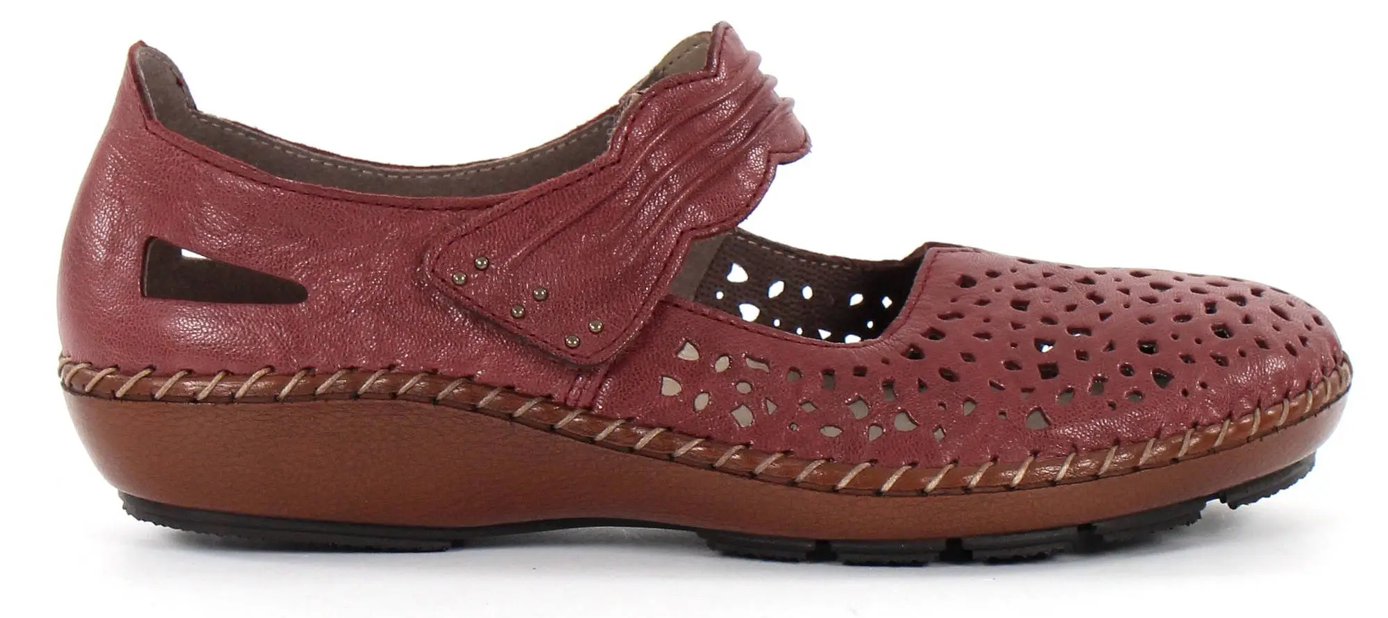 Promenadskor i äkta läder med hålmönster.